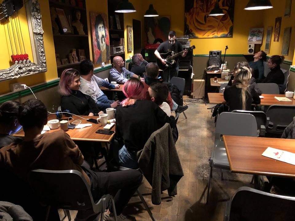 Open Mic is not a place but an event. It uses various popular places to bring people together who can sing. The principle is as simple as if you have a guitar and can sing a song. Then you can join the community to celebrate music holiday for couple of hours. Follow their page on Facebook to find out venues it is happening every month.